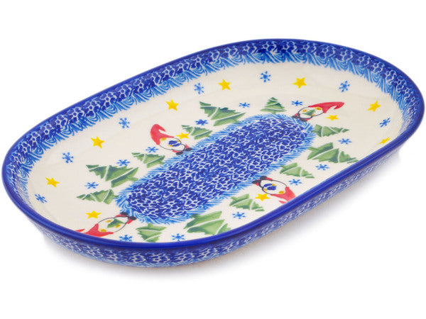 This Polish Pottery Platter is handmade and handpainted by the Ceramika Nina factory in Boleslawiec, Poland. Manufacturer item number H1869P. It is 1¼" high and measures 10¾" by 6¾". The weight of this Platter is 1.5 lbs. It is part of the Twinkle Twinkle Little Gnome Collection.