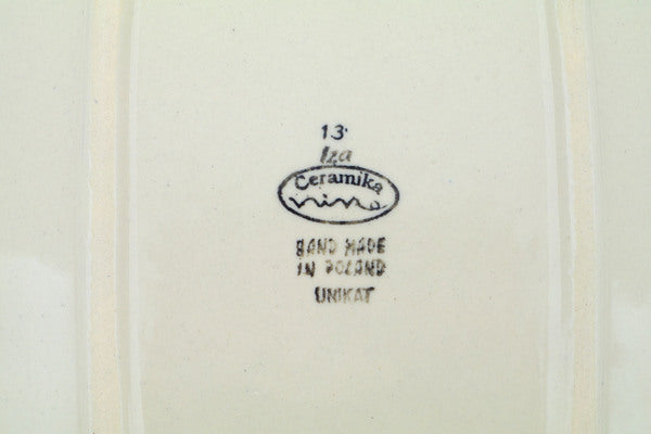 This Polish Pottery Platter is handmade and handpainted by the Ceramika Nina factory in Boleslawiec, Poland. Manufacturer item number H2569P. It is 1¼" high and measures 11¼" by 8¼". The weight of this Platter is 1.9 lbs. It is part of the Wild Mushroom Picking Collection.