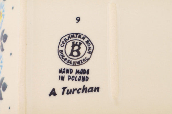 This Polish Pottery Platter with Handles is handmade and handpainted by the Ceramika Bona factory in Boleslawiec, Poland. Manufacturer item number H2069R. It is 2¼" high and measures 11" by 7". The weight of this Platter with Handles is 2.3 lbs. It is part of the Long-stemmed Beauties Collection.