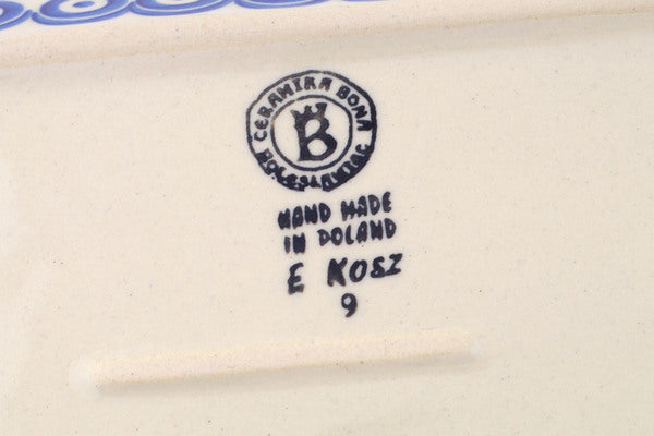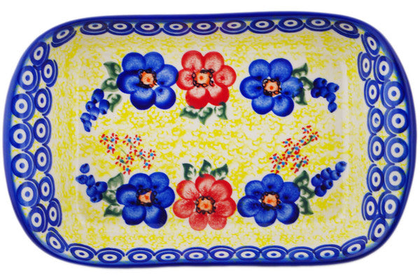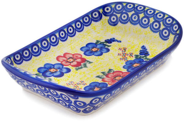 This Polish Pottery Platter with Handles is handmade and handpainted by the Ceramika Bona factory in Boleslawiec, Poland. Manufacturer item number H7139Q. It is 2¼" high and measures 11" by 7". The weight of this Platter with Handles is 2.3 lbs. It is part of the Neon Poppies Collection.
