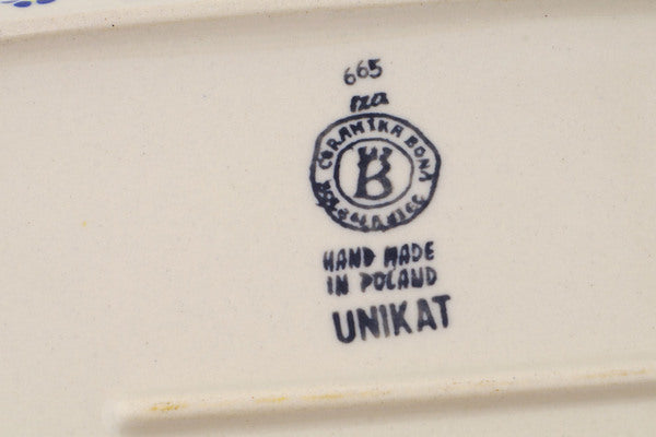 This is a Polish pottery Unikat (Signature) Rectangular Baker with Handles, which means that it has been hand painted with both sponges and brushes and it is signed by the artist who painted it. Unikat pieces are the most intricate works of art. Larger Unikat items take hours of very careful work to finish.