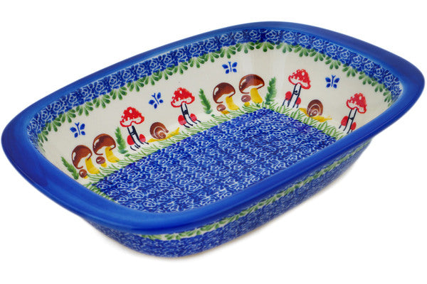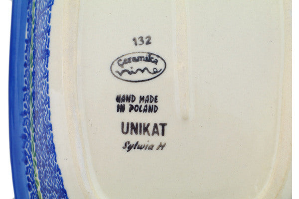 This Polish Pottery Rectangular Baker with Handles is handmade and handpainted by the Ceramika Nina factory in Boleslawiec, Poland. Manufacturer item number H3269P. It is 2¼" high and measures 11¼" by 7¾". The capacity of this Rectangular Baker with Handles is 45.48 oz (brimful) and it weighs 2.4 lbs. It is part of the Gardens In Poland Collection.