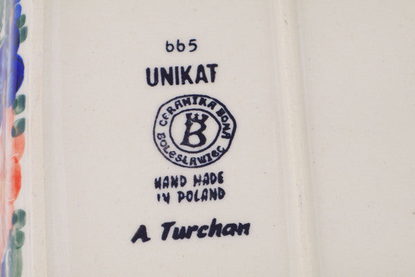 This is a Polish pottery Unikat (Signature) Rectangular Baker with Handles, which means that it has been hand painted with both sponges and brushes and it is signed by the artist who painted it. Unikat pieces are the most intricate works of art. Larger Unikat items take hours of very careful work to finish.
