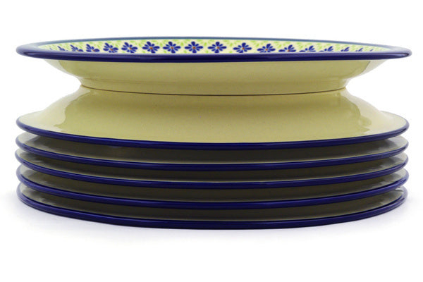 This Polish Pottery Set of 6 Plates is handmade and handpainted by the Zaklady Ceramiczne factory in Boleslawiec, Poland. Manufacturer item number H8866F. It is 1" high and measures 10¾" by 10¾". The weight of this Set of 6 Plates is 13.9 lbs. It is part of the Green Gingham Peacock Collection.