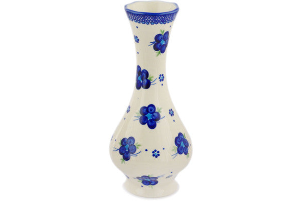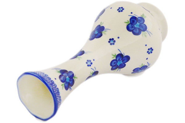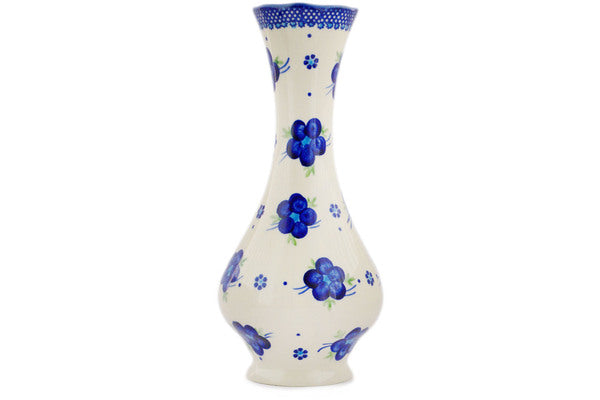 This Polish Pottery Vase is handmade and handpainted by the Ceramika Bona factory in Boleslawiec, Poland. Manufacturer item number H1026H. It is 11½" high and measures 5" by 5". The capacity of this Vase is 39.73 oz (brimful) and it weighs 1.7 lbs. It is part of the Bleu-Belle Fleur Collection.