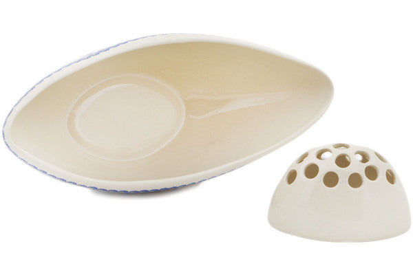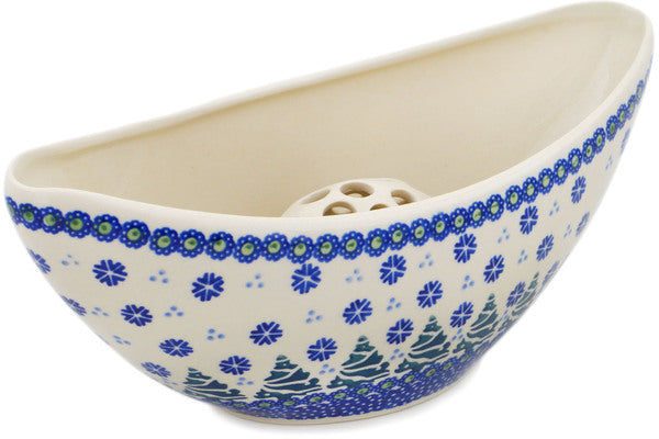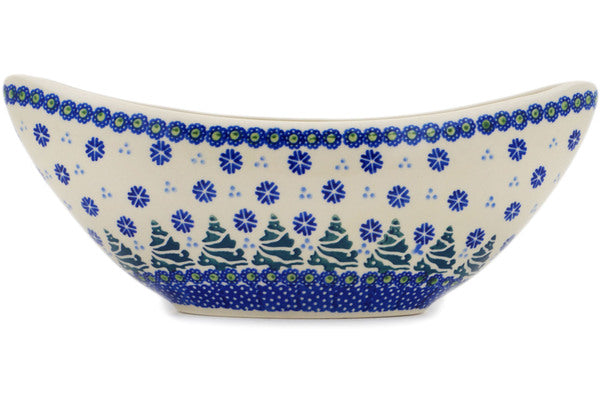 This Polish Pottery Vase is handmade and handpainted by the Manufaktura factory in Boleslawiec, Poland. Manufacturer item number H6022O. It is 3½" high and measures 10¾" by 4¾". The capacity of this Vase is 340.91 oz (brimful) and it weighs 1.6 lbs. It is part of the Falling Snowflakes Collection.