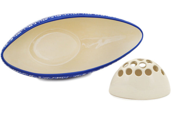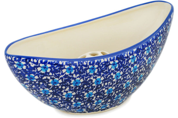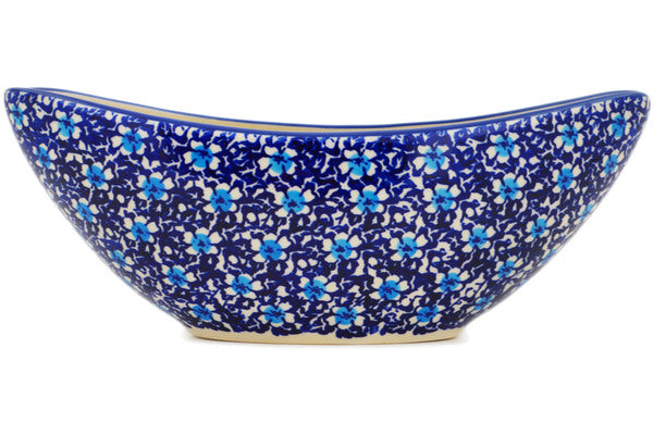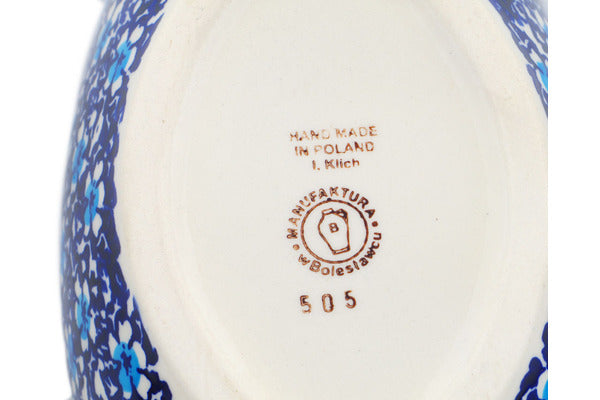 This Polish Pottery Vase is handmade and handpainted by the Manufaktura factory in Boleslawiec, Poland. Manufacturer item number H5998O. It is 3½" high and measures 10¾" by 4¾". The capacity of this Vase is 340.91 oz (brimful) and it weighs 1.6 lbs. It is part of the Flowers On The Lake Collection.