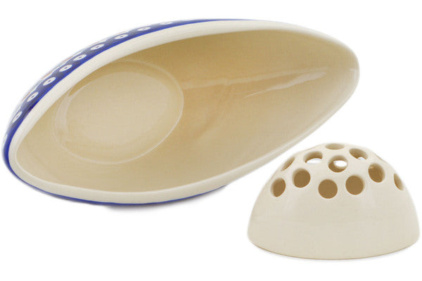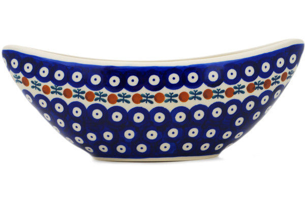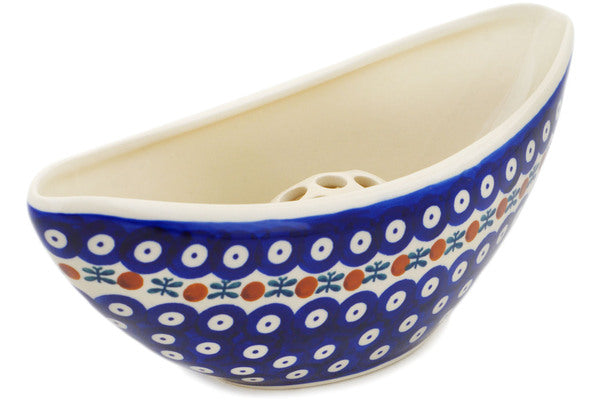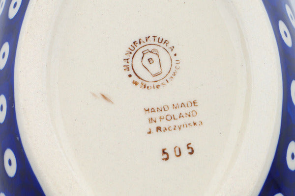 This Polish Pottery Vase is handmade and handpainted by the Manufaktura factory in Boleslawiec, Poland. Manufacturer item number H2496P. It is 3½" high and measures 10¾" by 4¾". The capacity of this Vase is 340.91 oz (brimful) and it weighs 1.6 lbs. It is part of the Mosquito Collection.