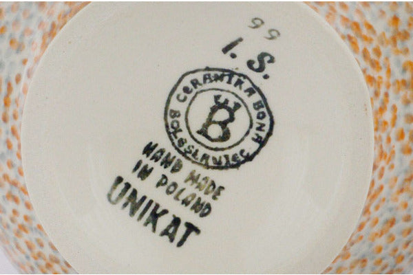 This is a Polish pottery Unikat (Signature) Vase, which means that it has been hand painted with both sponges and brushes and it is signed by the artist who painted it. Unikat pieces are the most intricate works of art. Larger Unikat items take hours of very careful work to finish.