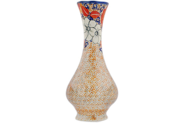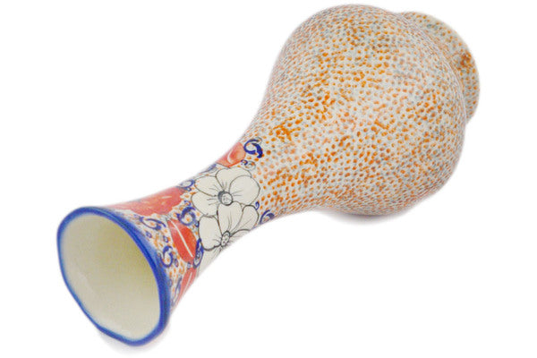 This Polish Pottery Vase is handmade and handpainted by the Ceramika Bona factory in Boleslawiec, Poland. Manufacturer item number H5999R. It is 11½" high and measures 5" by 5". The capacity of this Vase is 39.73 oz (brimful) and it weighs 1.7 lbs. It is part of the Poppy Passion Collection.