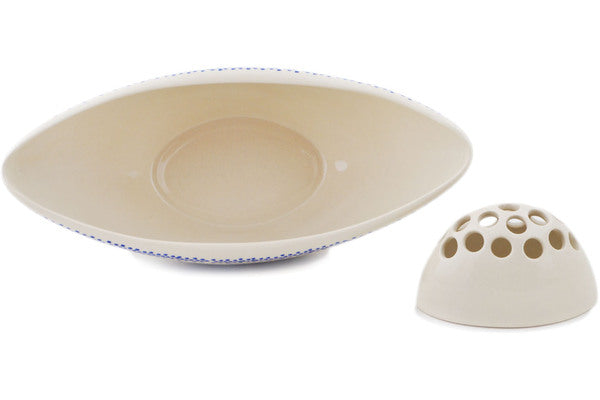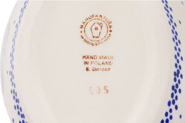 This Polish Pottery Vase is handmade and handpainted by the Manufaktura factory in Boleslawiec, Poland. Manufacturer item number H2474P. It is 3½" high and measures 10¾" by 4¾". The capacity of this Vase is 340.91 oz (brimful) and it weighs 1.6 lbs. It is part of the Tail Feathers Collection.