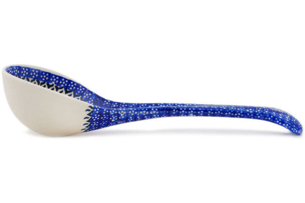 This Polish Pottery Ladle is handmade and handpainted by the Ceramika Bona factory in Boleslawiec, Poland. Manufacturer item number H3568Q. It is 2¾" high and measures 12" by 3¾". The capacity of this Ladle is 6.76 oz (brimful) and it weighs 0.7 lbs. It is part of the Spring Flower Ring Collection.