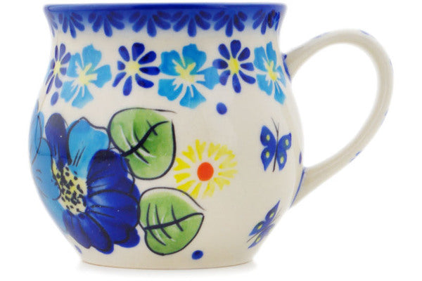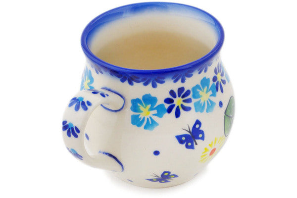 This Polish Pottery Bubble Mug is handmade and handpainted by the Ceramika Bona factory in Boleslawiec, Poland. Manufacturer item number H3554Q. It is 3½" high and measures 4¾" by 3¾". The capacity of this Bubble Mug is 11.77 oz (brimful) and it weighs 0.6 lbs. It is part of the Endless Summer Collection.