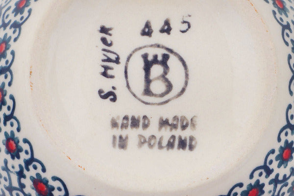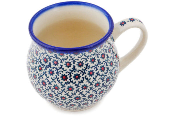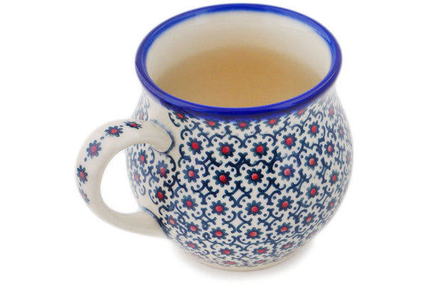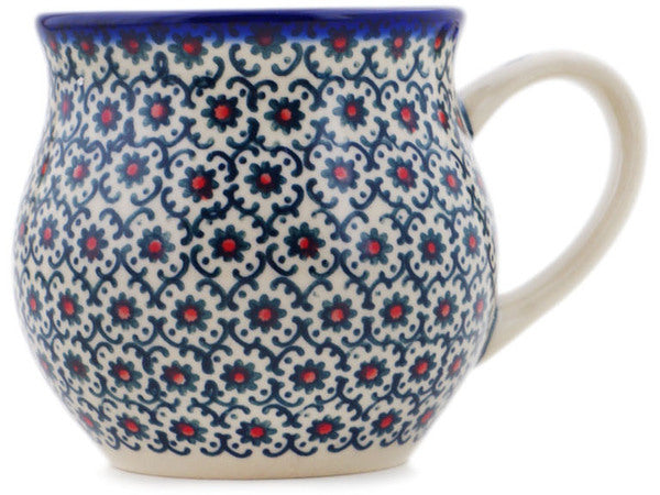 This Polish Pottery Bubble Mug is handmade and handpainted by the Ceramika Bona factory in Boleslawiec, Poland. Manufacturer item number H9735Q. It is 3½" high and measures 4¾" by 3¾". The capacity of this Bubble Mug is 11.77 oz (brimful) and it weighs 0.6 lbs. It is part of the Field Of Black Daisies Collection.