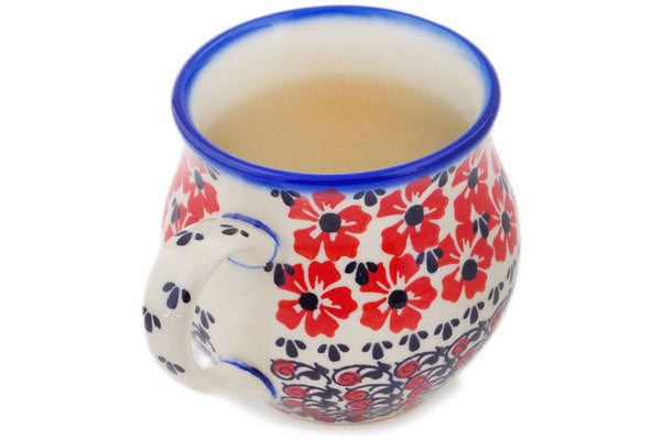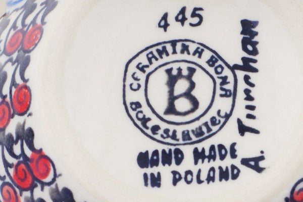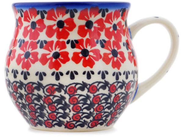 This Polish Pottery Bubble Mug is handmade and handpainted by the Ceramika Bona factory in Boleslawiec, Poland. Manufacturer item number H7106Q. It is 3½" high and measures 4¾" by 3¾". The capacity of this Bubble Mug is 11.77 oz (brimful) and it weighs 0.6 lbs. It is part of the Hawaiian Bliss Collection.