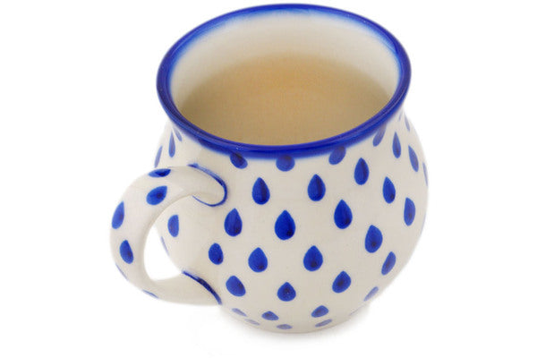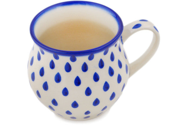 This Polish Pottery Bubble Mug is handmade and handpainted by the Ceramika Bona factory in Boleslawiec, Poland. Manufacturer item number H1259R. It is 3½" high and measures 4¾" by 3¾". The capacity of this Bubble Mug is 11.77 oz (brimful) and it weighs 0.6 lbs. It is part of the Morning Dew Collection.
