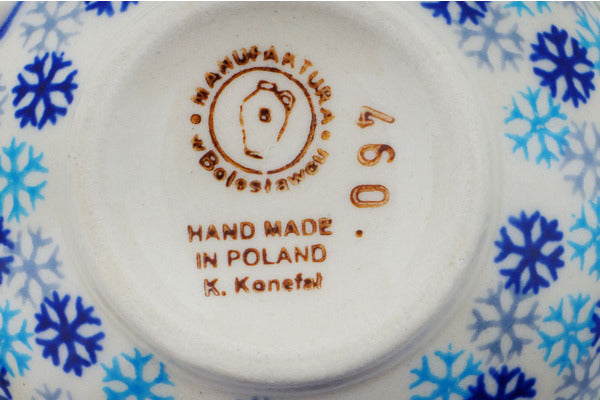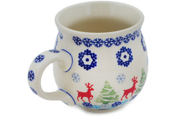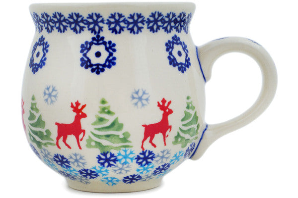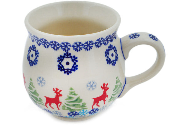 This Polish Pottery Bubble Mug is handmade and handpainted by the Manufaktura factory in Boleslawiec, Poland. Manufacturer item number H0542O. It is 3¾" high and measures 5" by 1¾". The capacity of this Bubble Mug is 11.60 oz (brimful) and it weighs 0.8 lbs. It is part of the Ring Around The Reindeer Collection.