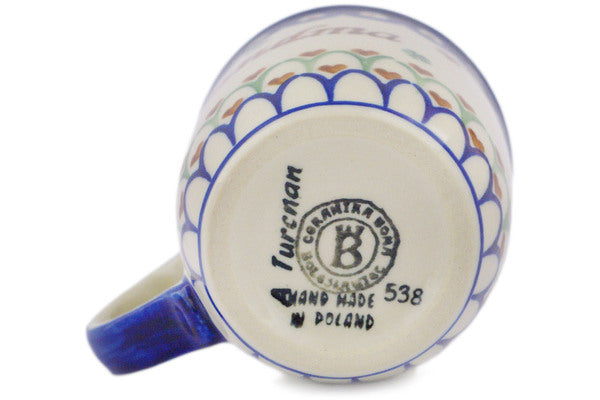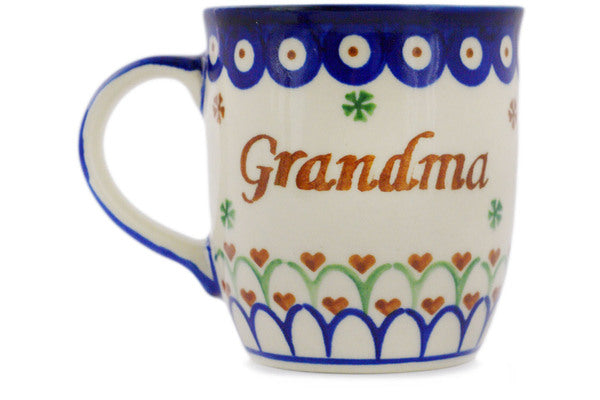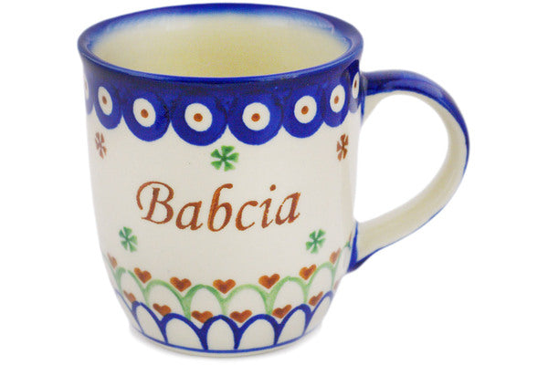 This Polish Pottery Mug is handmade and handpainted by the Ceramika Bona factory in Boleslawiec, Poland. Manufacturer item number H5772R. It is 4" high and measures 5" by 3½". The capacity of this Mug is 12.04 oz (brimful) and it weighs 0.8 lbs. It is part of the Babcia-Grandma Collection.
