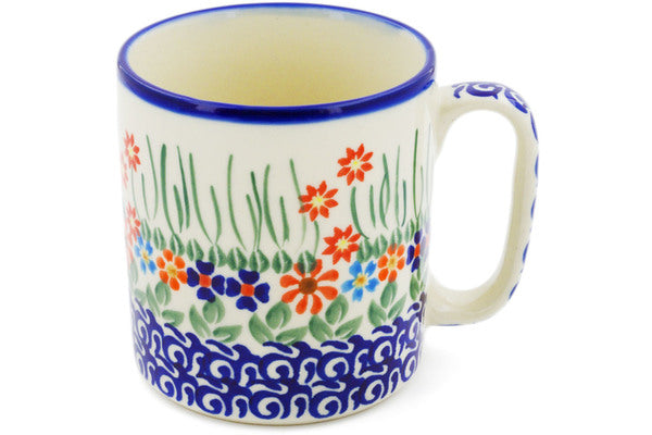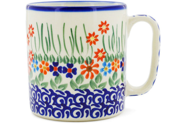 This Polish Pottery Mug is handmade and handpainted by the Ceramika Bona factory in Boleslawiec, Poland. Manufacturer item number H7466G. It is 3¾" high and measures 4¾" by 3½". The capacity of this Mug is 13.12 oz (brimful) and it weighs 0.9 lbs. It is part of the Blissful Daisy Collection.