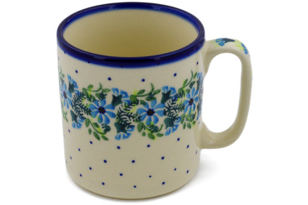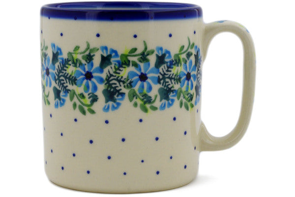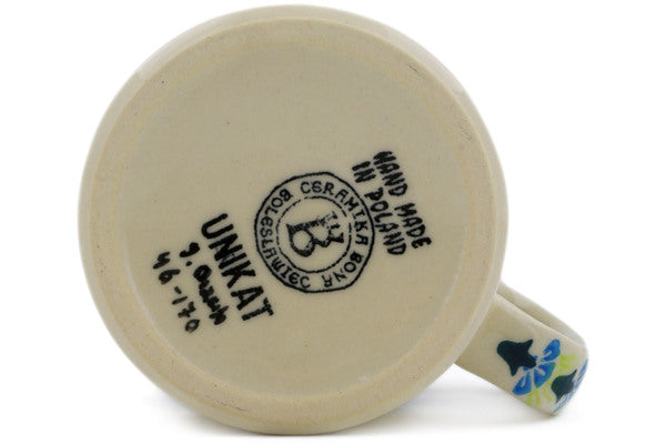 This Polish Pottery Mug is handmade and handpainted by the Ceramika Bona factory in Boleslawiec, Poland. Manufacturer item number H7043J. It is 3¾" high and measures 4¾" by 3½". The capacity of this Mug is 13.12 oz (brimful) and it weighs 0.9 lbs. It is part of the Blue Wreath Collection.