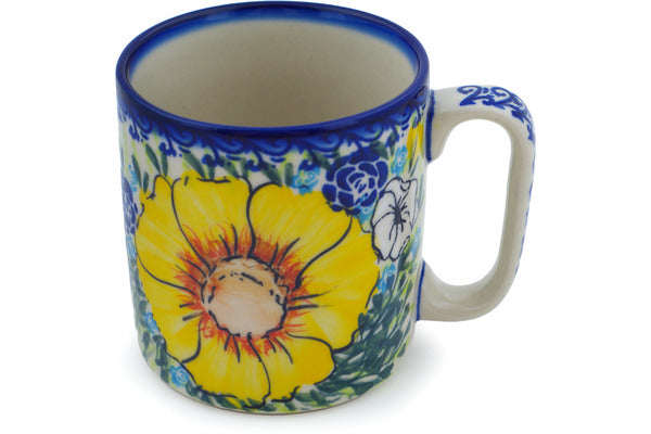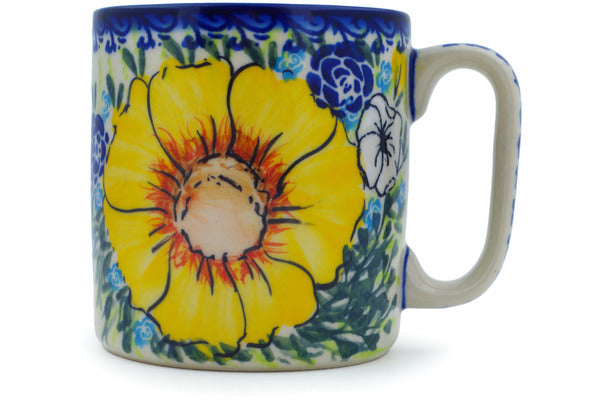 This Polish Pottery Mug is handmade and handpainted by the Ceramika Nina factory in Boleslawiec, Poland. Manufacturer item number H9737N. It is 3¾" high and measures 4¾" by 3½". The capacity of this Mug is 13.12 oz (brimful) and it weighs 0.9 lbs. It is part of the Bright Blooms Collection.