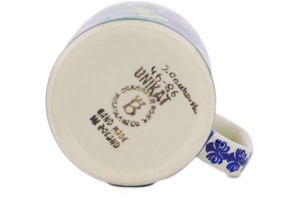 This is a Polish pottery Unikat (Signature) Mug, which means that it has been hand painted with both sponges and brushes and it is signed by the artist who painted it. Unikat pieces are the most intricate works of art. Larger Unikat items take hours of very careful work to finish.