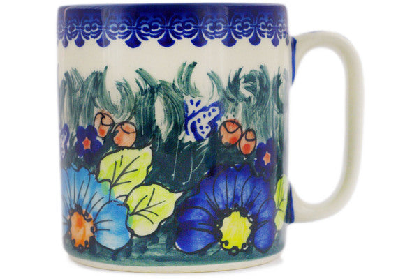 This Polish Pottery Mug is handmade and handpainted by the Ceramika Bona factory in Boleslawiec, Poland. Manufacturer item number H4925F. It is 3¾" high and measures 4¾" by 3½". The capacity of this Mug is 13.12 oz (brimful) and it weighs 0.9 lbs. It is part of the Butterfly Splendor Collection.