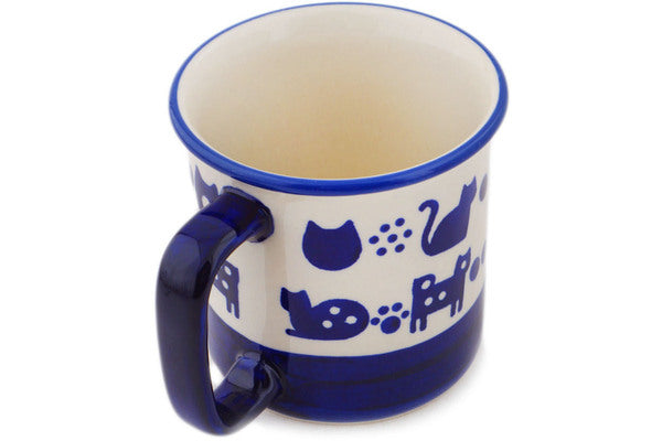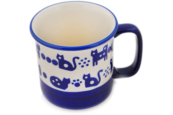 This Polish Pottery Mug is handmade and handpainted by the Manufaktura factory in Boleslawiec, Poland. Manufacturer item number H0068Q. It is 3¾" high and measures 5" by 3¾". The capacity of this Mug is 11.83 oz (brimful) and it weighs 0.9 lbs. It is part of the Cobalt Kittens Collection.