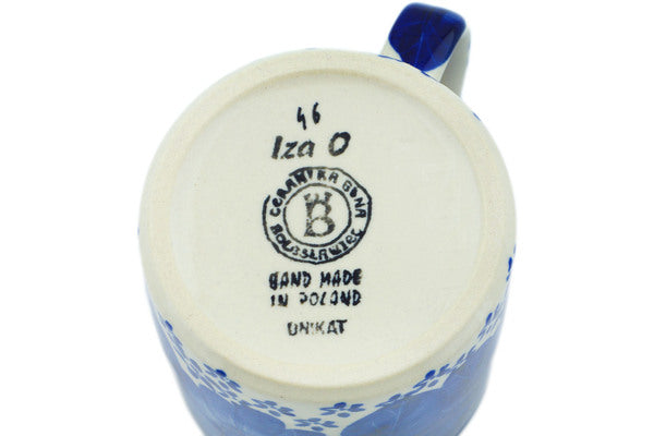 This Polish Pottery Mug is handmade and handpainted by the Ceramika Bona factory in Boleslawiec, Poland. Manufacturer item number H8980N. It is 3¾" high and measures 4¾" by 3½". The capacity of this Mug is 13.12 oz (brimful) and it weighs 0.9 lbs. It is part of the Divine Cobalt Collection.