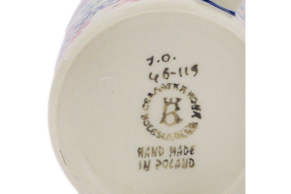 This Polish Pottery Mug is handmade and handpainted by the Ceramika Bona factory in Boleslawiec, Poland. Manufacturer item number H0679F. It is 3¾" high and measures 4¾" by 3½". The capacity of this Mug is 13.12 oz (brimful) and it weighs 0.9 lbs. It is part of the Fanciful Ladybug Collection.