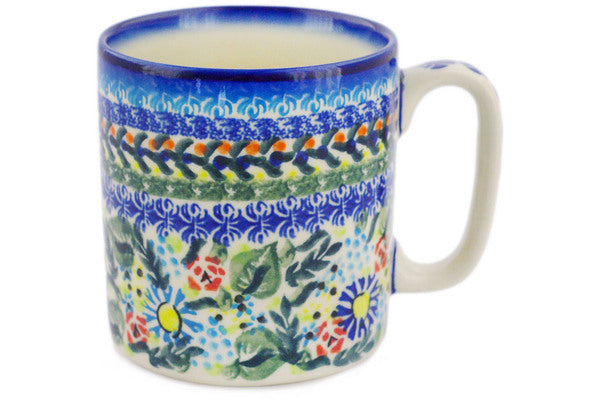 This Polish Pottery Mug is handmade and handpainted by the Ceramika Bona factory in Boleslawiec, Poland. Manufacturer item number H3946H. It is 3¾" high and measures 4¾" by 3½". The capacity of this Mug is 13.12 oz (brimful) and it weighs 0.9 lbs. It is part of the Flor-De-Lis Collection.