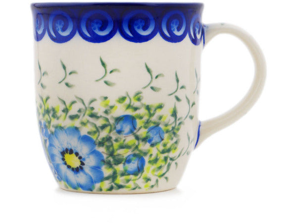 This Polish Pottery Mug is handmade and handpainted by the Ceramika Bona factory in Boleslawiec, Poland. Manufacturer item number H2100R. It is 4" high and measures 5" by 3½". The capacity of this Mug is 12.04 oz (brimful) and it weighs 0.8 lbs. It is part of the Gorgeous Morning Glory Collection.