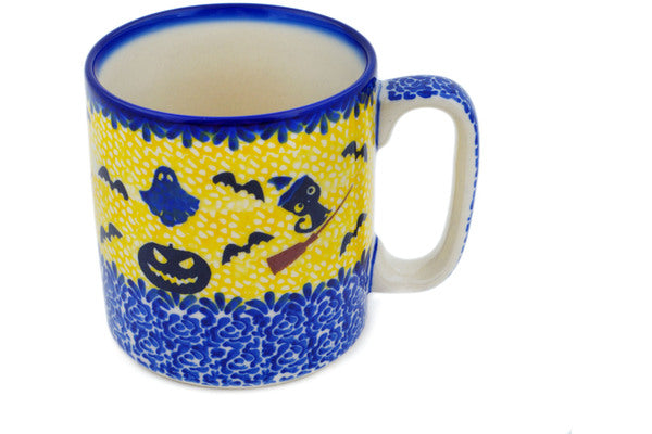 This Polish Pottery Mug is handmade and handpainted by the Ceramika Nina factory in Boleslawiec, Poland. Manufacturer item number H3256P. It is 3¾" high and measures 4¾" by 3½". The capacity of this Mug is 13.12 oz (brimful) and it weighs 0.9 lbs. It is part of the Halloween Evening Collection.