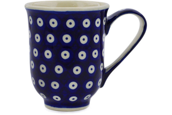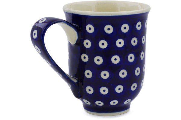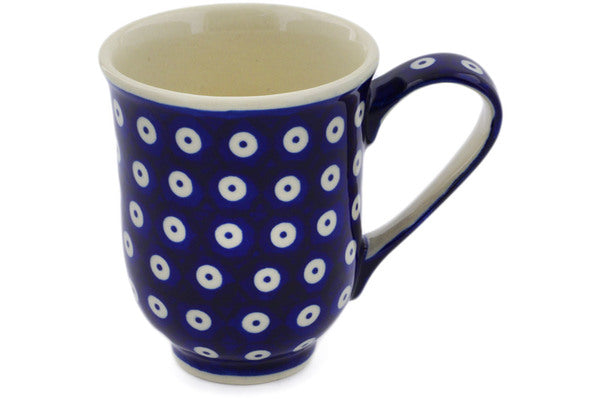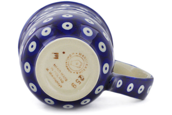 This Polish Pottery Mug is handmade and handpainted by the Manufaktura factory in Boleslawiec, Poland. Manufacturer item number H3247K. It is 4¼" high and measures 5" by 3½". The capacity of this Mug is 11.77 oz (brimful) and it weighs 0.8 lbs. It is part of the Peacock Eyes Collection.