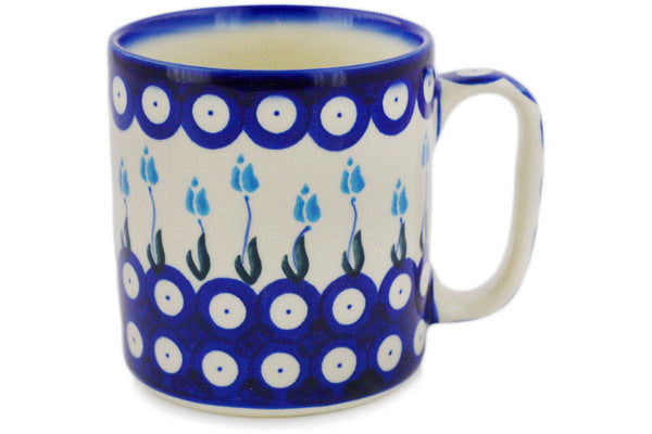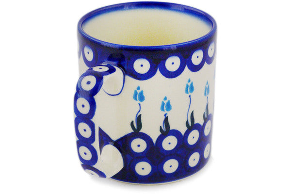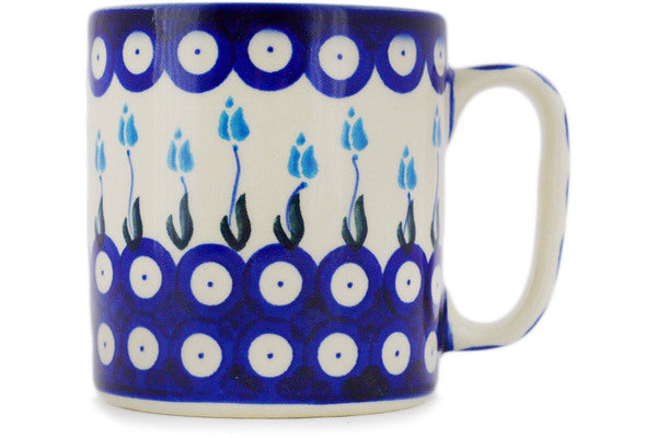This Polish Pottery Mug is handmade and handpainted by the Ceramika Bona factory in Boleslawiec, Poland. Manufacturer item number H0939F. It is 3¾" high and measures 4¾" by 3½". The capacity of this Mug is 13.12 oz (brimful) and it weighs 0.9 lbs. It is part of the Peacock Tulip Garden Collection.