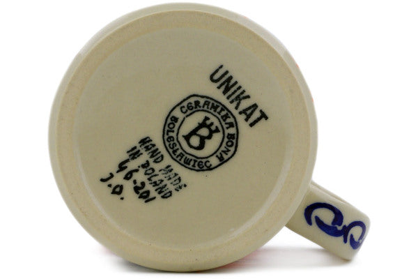 This is a Polish pottery Unikat (Signature) Mug, which means that it has been hand painted with both sponges and brushes and it is signed by the artist who painted it. Unikat pieces are the most intricate works of art. Larger Unikat items take hours of very careful work to finish.