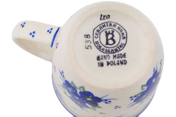 This Polish Pottery Mug is handmade and handpainted by the Ceramika Bona factory in Boleslawiec, Poland. Manufacturer item number H9623Q. It is 4" high and measures 5" by 3½". The capacity of this Mug is 12.04 oz (brimful) and it weighs 0.8 lbs. It is part of the Poppy Triad Collection.