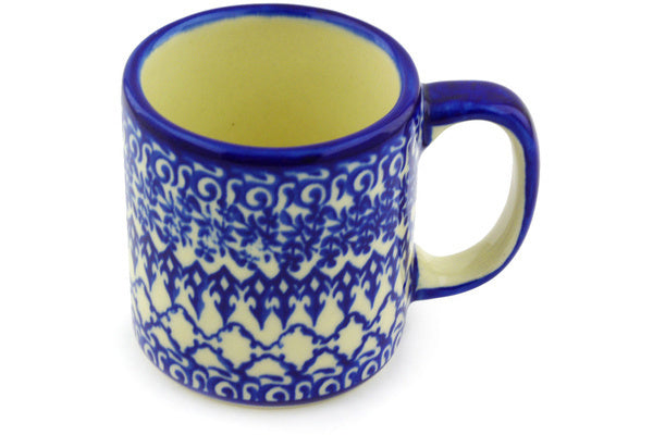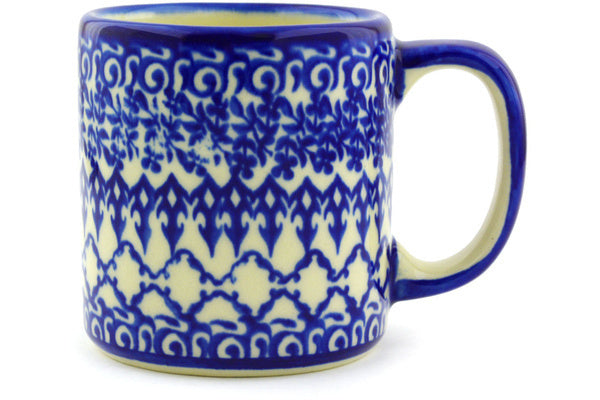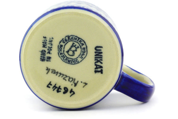 This Polish Pottery Mug is handmade and handpainted by the Ceramika Bona factory in Boleslawiec, Poland. Manufacturer item number H3035G. It is 3¾" high and measures 4¾" by 3½". The capacity of this Mug is 13.12 oz (brimful) and it weighs 0.9 lbs. It is part of the Winter Blue Collection.