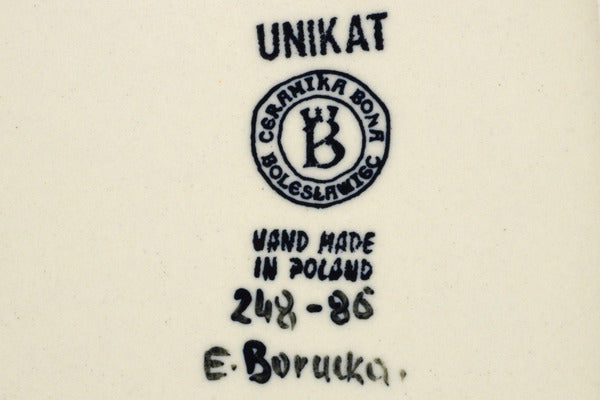 This is a Polish pottery Unikat (Signature) Platter with Handles, which means that it has been hand painted with both sponges and brushes and it is signed by the artist who painted it. Unikat pieces are the most intricate works of art. Larger Unikat items take hours of very careful work to finish.