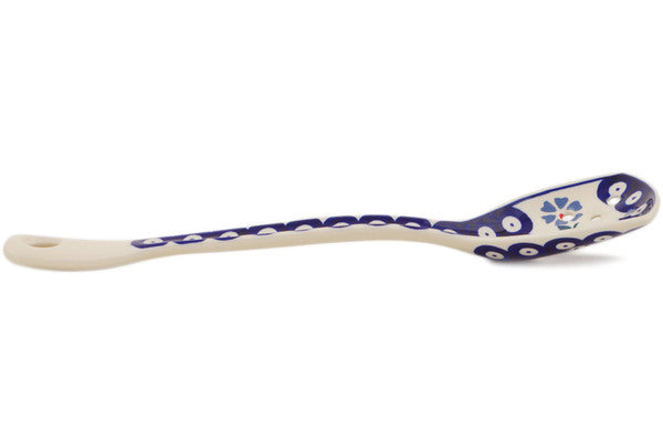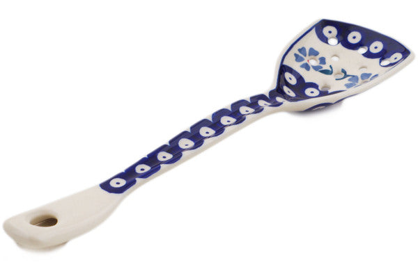 This Polish Pottery Spoon is handmade and handpainted by the Manufaktura factory in Boleslawiec, Poland. Manufacturer item number H7155O. It is 1¼" high and measures 12¼" by 3". The weight of this Spoon is 4.8 lbs. It is part of the Peacock Forget-Me-Not Collection.