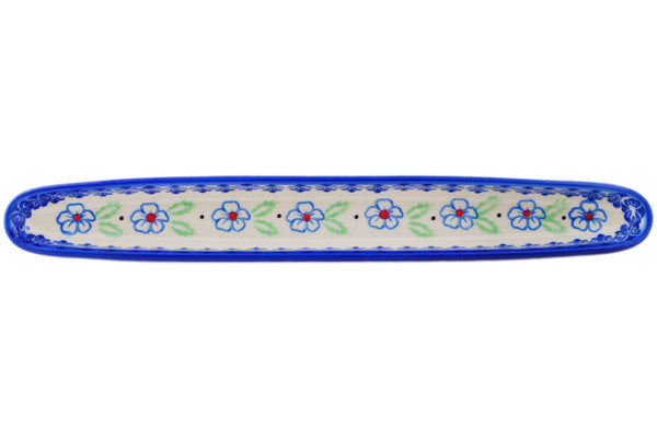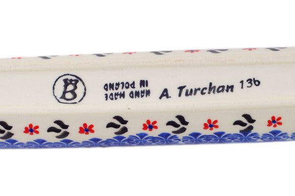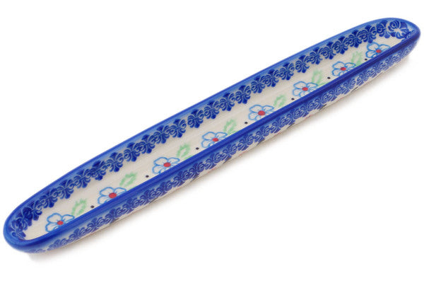 This Polish Pottery Olive Dish is handmade and handpainted by the Ceramika Bona factory in Boleslawiec, Poland. Manufacturer item number H2020R. It is 1" high and measures 13" by 1¾". The weight of this Olive Dish is 0.6 lbs. It is part of the Sweet Day Collection.