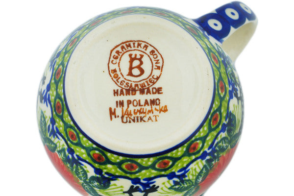 This is a Polish pottery Unikat (Signature) Bubble Mug, which means that it has been hand painted with both sponges and brushes and it is signed by the artist who painted it. Unikat pieces are the most intricate works of art. Larger Unikat items take hours of very careful work to finish.