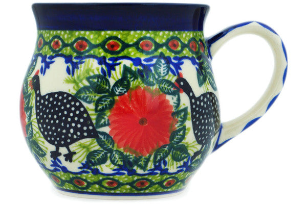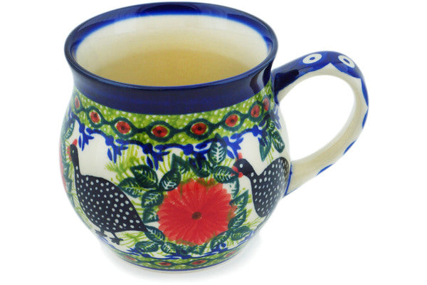 This Polish Pottery Bubble Mug is handmade and handpainted by the Kobaltem Malowane factory in Boleslawiec, Poland. Manufacturer item number H5285M. It is 3½" high and measures 5" by 3¾". The capacity of this Bubble Mug is 12.85 oz (brimful) and it weighs 0.8 lbs. It is part of the Fowl In The Florals Collection.