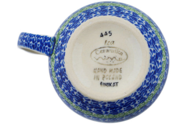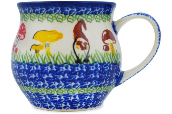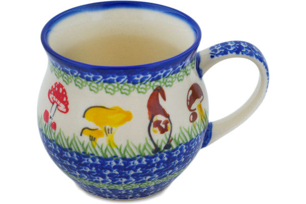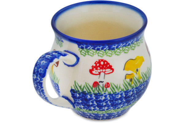 This Polish Pottery Bubble Mug is handmade and handpainted by the Ceramika Nina factory in Boleslawiec, Poland. Manufacturer item number H1409P. It is 3½" high and measures 4¾" by 3¾". The capacity of this Bubble Mug is 11.77 oz (brimful) and it weighs 0.6 lbs. It is part of the Mushroom Garden Collection.