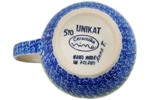 This is a Polish pottery Unikat (Signature) Bubble Mug, which means that it has been hand painted with both sponges and brushes and it is signed by the artist who painted it. Unikat pieces are the most intricate works of art. Larger Unikat items take hours of very careful work to finish.