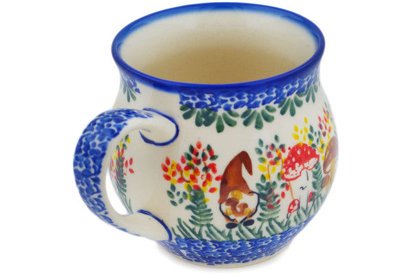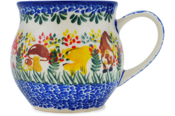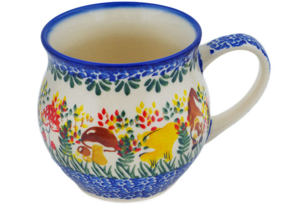 This Polish Pottery Bubble Mug is handmade and handpainted by the Ceramika Nina factory in Boleslawiec, Poland. Manufacturer item number H1430P. It is 3½" high and measures 4¾" by 3¾". The capacity of this Bubble Mug is 11.77 oz (brimful) and it weighs 0.6 lbs. It is part of the Mushroom Love Collection.