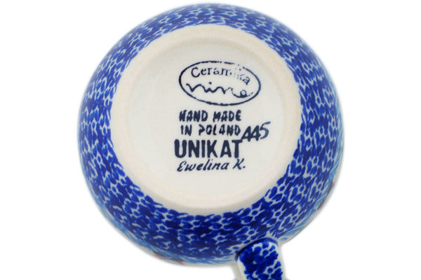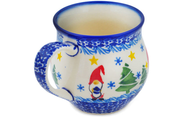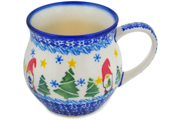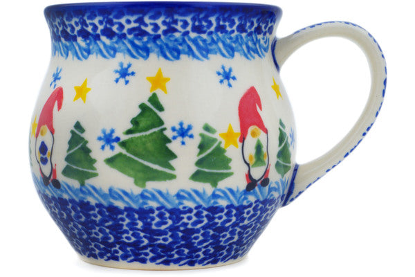 This Polish Pottery Bubble Mug is handmade and handpainted by the Ceramika Nina factory in Boleslawiec, Poland. Manufacturer item number H1503P. It is 3½" high and measures 4¾" by 3¾". The capacity of this Bubble Mug is 11.77 oz (brimful) and it weighs 0.6 lbs. It is part of the Twinkle Twinkle Little Gnome Collection.