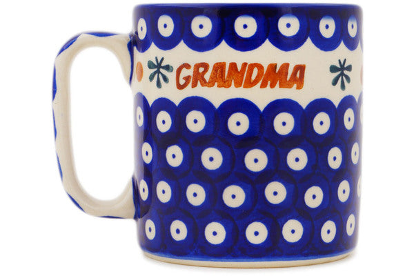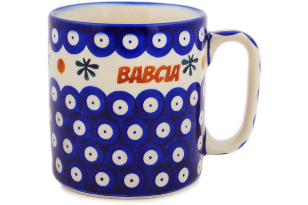 This Polish Pottery Mug is handmade and handpainted by the Ceramika Bona factory in Boleslawiec, Poland. Manufacturer item number H2283R. It is 3¾" high and measures 4¾" by 3½". The capacity of this Mug is 13.12 oz (brimful) and it weighs 0.9 lbs. It is part of the Blue Eyes Babcia Collection.