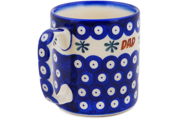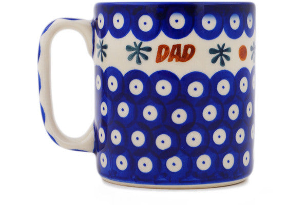 This Polish Pottery Mug is handmade and handpainted by the Ceramika Bona factory in Boleslawiec, Poland. Manufacturer item number H9799Q. It is 3¾" high and measures 4¾" by 3½". The capacity of this Mug is 13.12 oz (brimful) and it weighs 0.9 lbs. It is part of the Blue Eyes Dad Collection.