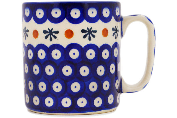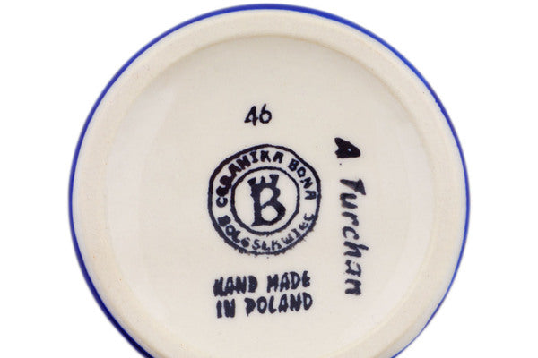 This Polish Pottery Mug is handmade and handpainted by the Ceramika Bona factory in Boleslawiec, Poland. Manufacturer item number H1391R. It is 3¾" high and measures 4¾" by 3½". The capacity of this Mug is 13.12 oz (brimful) and it weighs 0.9 lbs. It is part of the Blue Eyes Mr. Collection.
